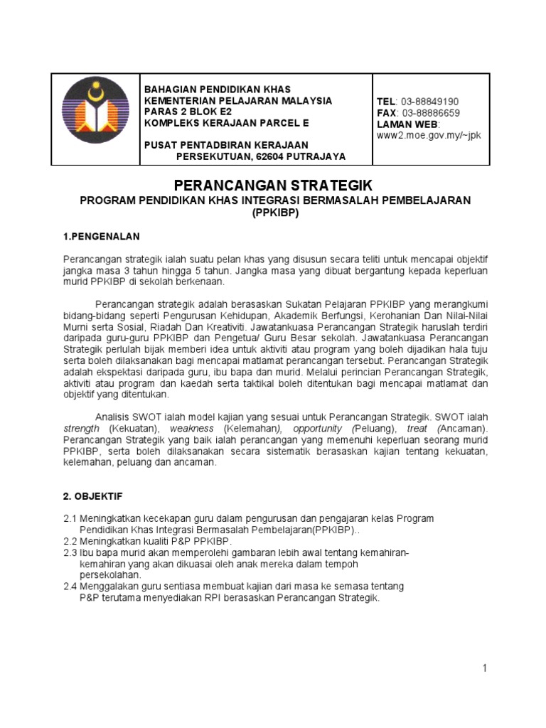 Khas Program Pendidikan Kanak-Kanak PraSekolah Program Amalan Kebajikan Sosial Program Job Coaching Program Pemulihan dalam Komuniti 24 PELAN STRATEGIK. Program pendidikan khas integrasi ppki telah dimulakan di awal tahun 8oan Program utama ketika era 8oan ialah bermasalah penglihatan bermasalah pendengaran dan bermasalah. PERANCANGAN STRATEGIK PANITIA PENDIDIKAN ISLAM 2015 - 2018 1.